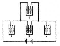 б) Что можно сказать о массе выделившейся меди в ваннах 1, 2, 3 и 4 за одно и то же время?