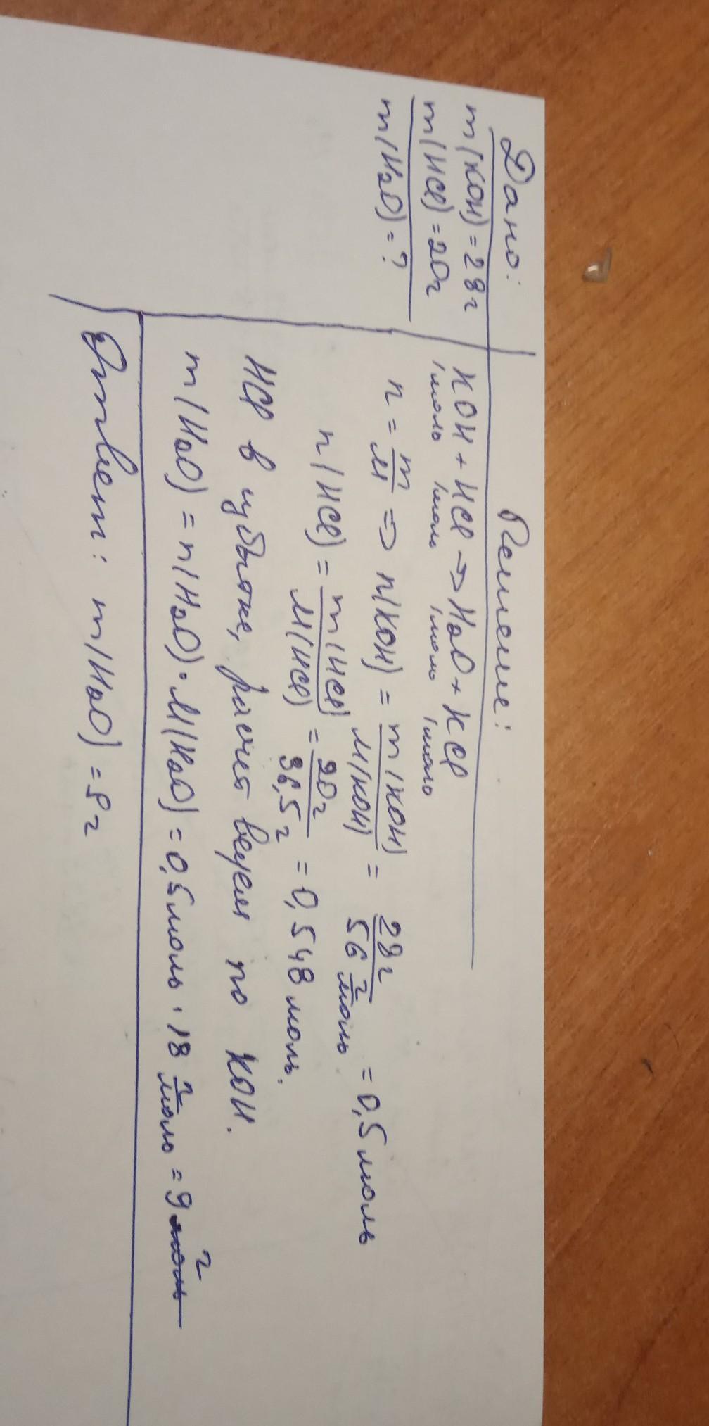 масса воды 9 грамм. расчет вели по гидроксиды калия