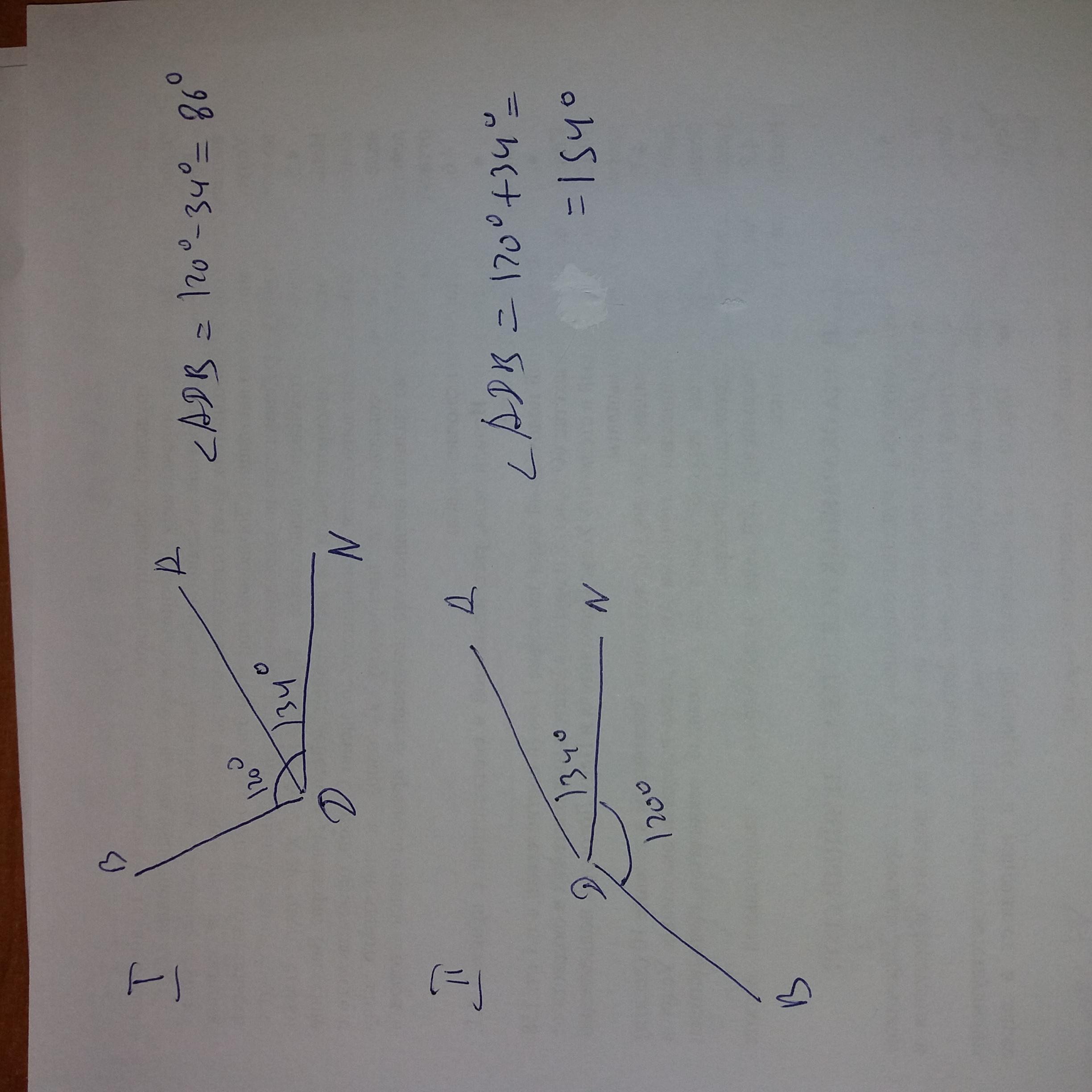 Угл ADN = 34 гр., угол NDB = 120 гр. Какой может быть градусная мера ADB?