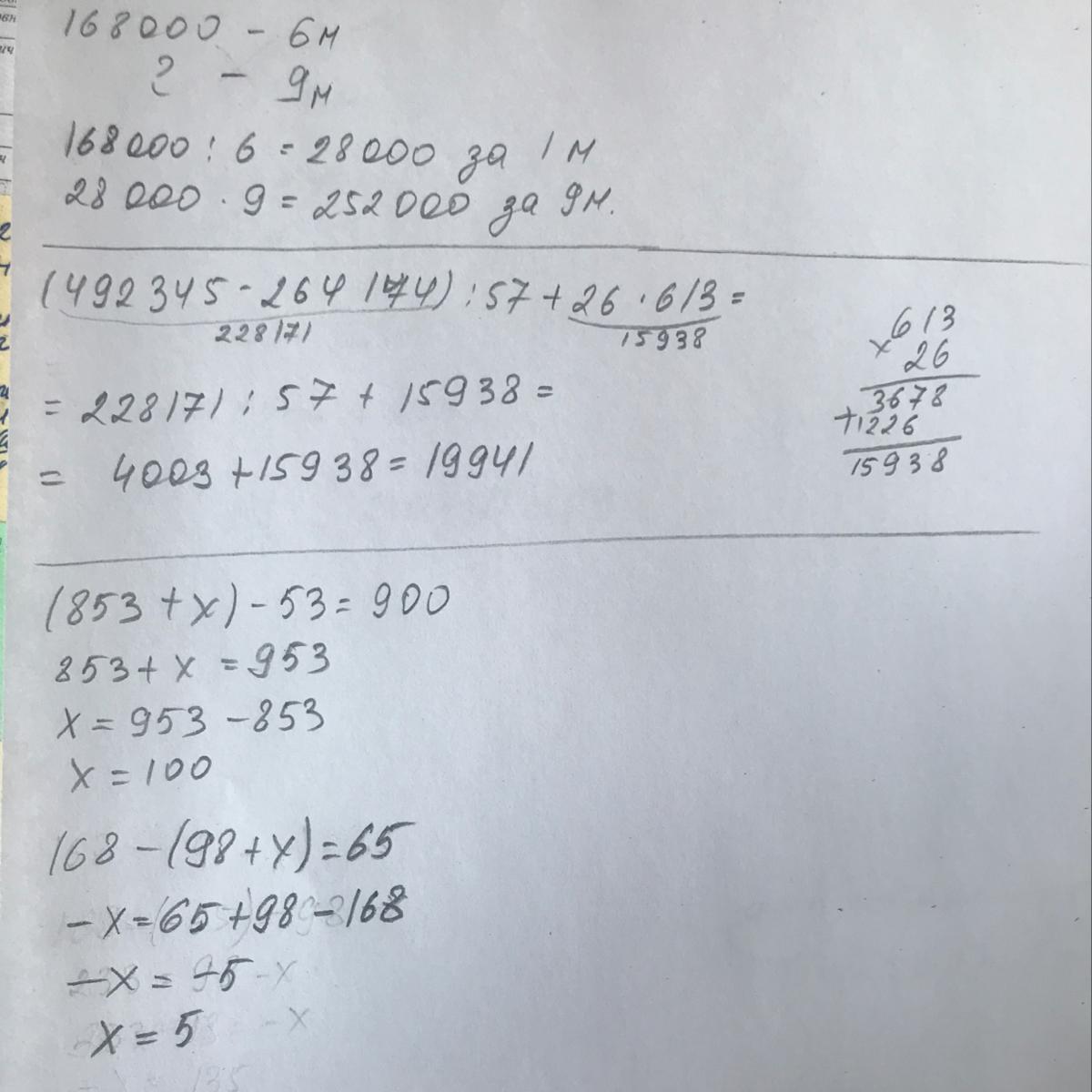 (492345 - 264174) : 57 + 26 x613=