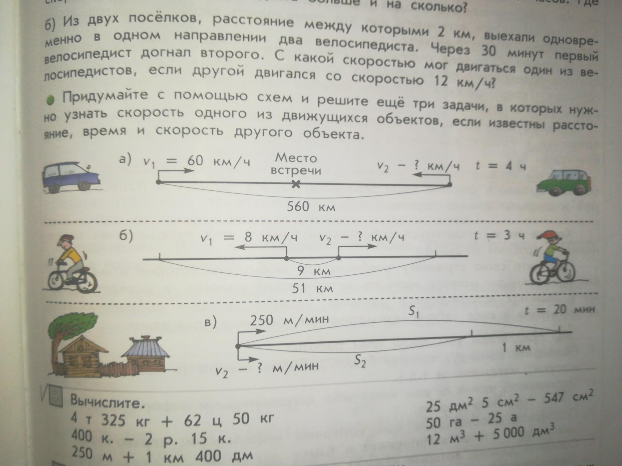 Придумайте с помощью схем и решите ещё три задачи, в которых нужно узнать Скорость одного из движущихся объектов, если известно расстояние, время и скорость другого объекта. Решите схему А