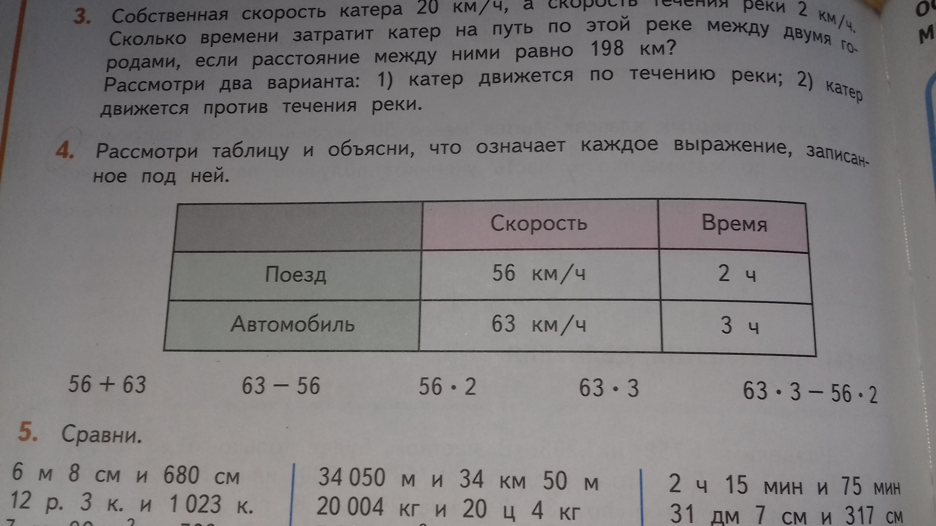 56+63 скорость за 1час поезда и машини 63-56 на сколько меньше проехал поезд или на сколько больше автомобиль 63•3 сколько автомобиль за 3 часа 56•2 сколько поезд за 2 часа 63•3-56•2 на сколько меньше проехал поезд за 2часа или на сколько больше автомобиль за 3 часа. Как то так.