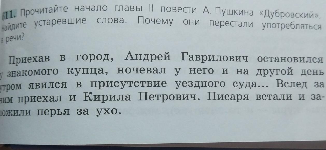 Ответ: купца ( так как исчезло сословие). Уездный суд ( сейчас нет уездов). Писаря ( нет такой должности). Перья ( сейчас слово ручки).