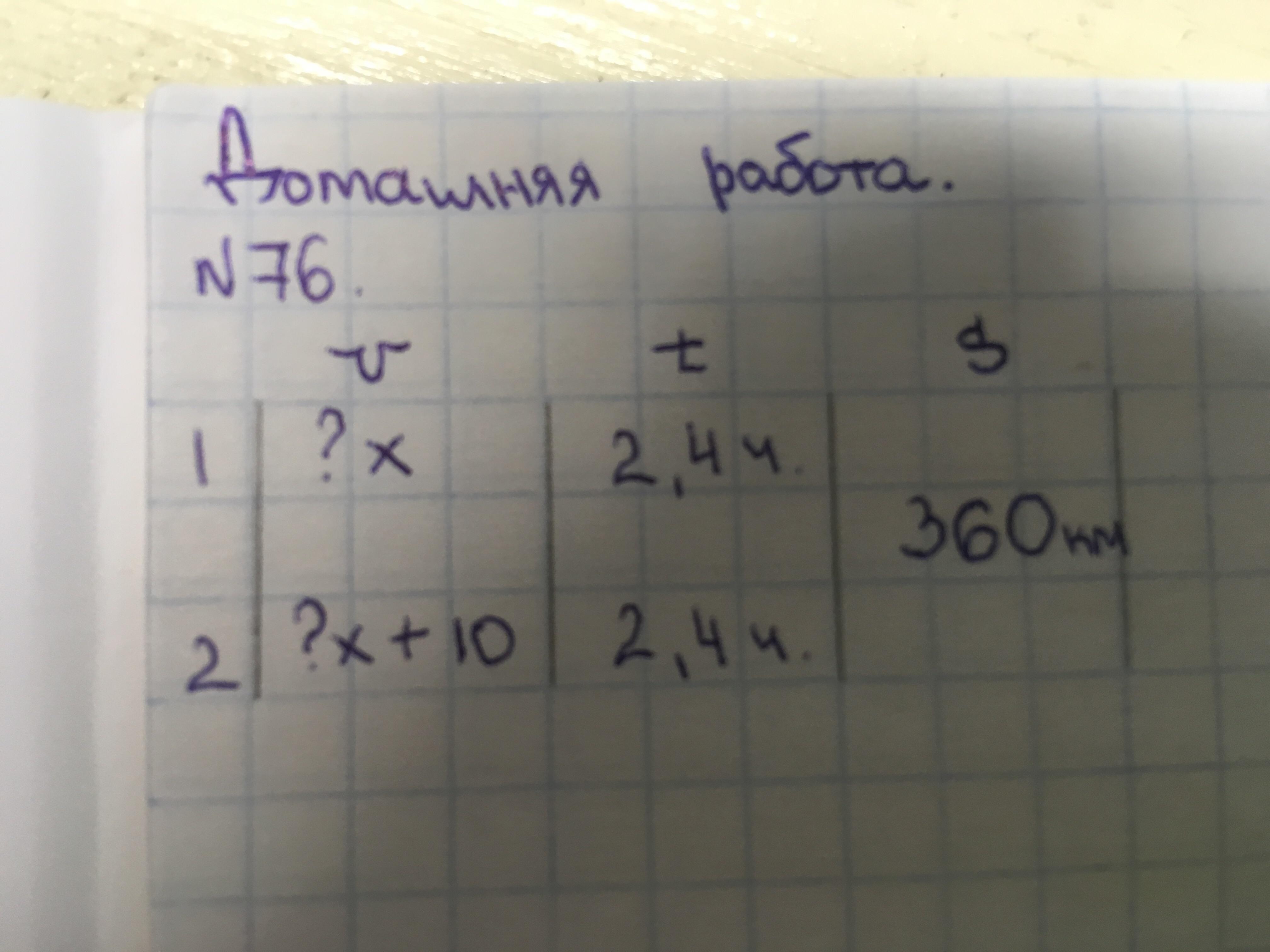 Расстояние делить на время тогда ты найдёшь скорость получается что X=360:2.4