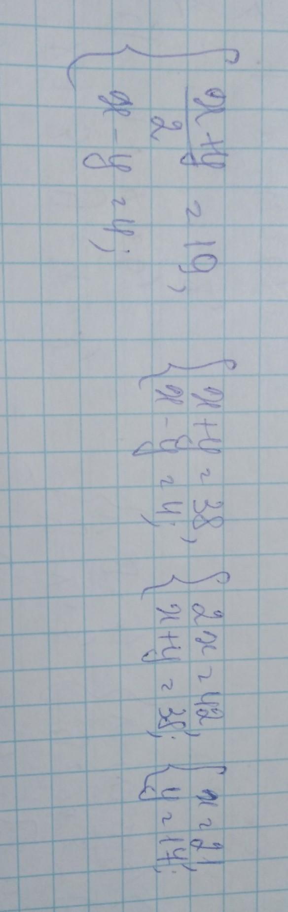 Среднее арифметическое двух чисел равна 19, а их разность равна 4.Найдите эти числа
