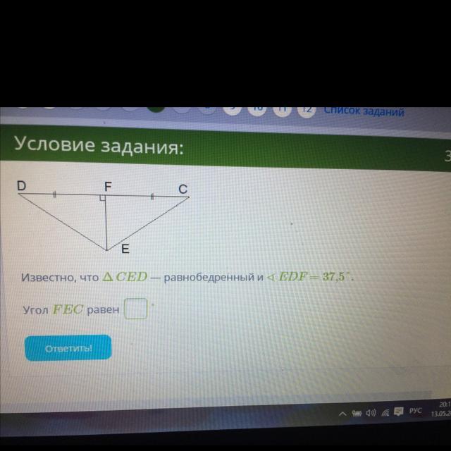 Эти треугольники равны и следовательно угол FEC равен углу CED