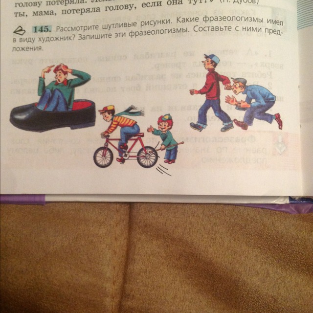 Рассмотрите шутливые рисунки. Какие фразеологизмы имел в виду художник? Запишите эти фразеологизмы . Составьте с ними предложения.