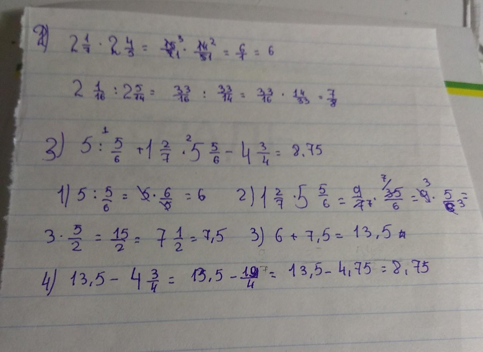 Ответ: 2) а) 6 б) 7/8 3) 8 целых 3/4
