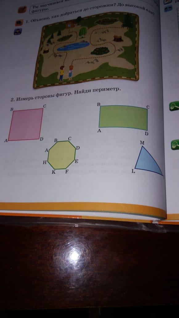 Измерь линейкой стороны этих фигур и суммируй. Периметр - это сумма длин всех сторон