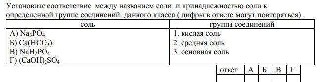 Установите соответствие между названием соли и принадлежностью соли к