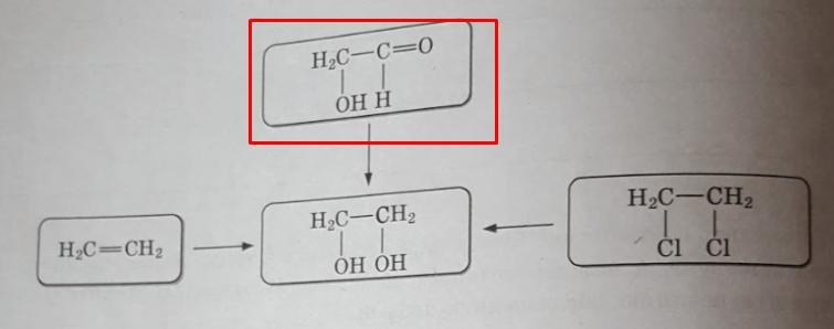 Это, как оказалось, гликолевый альдегид, но реакцию превращения в этиленгликоль я так и не нашла.