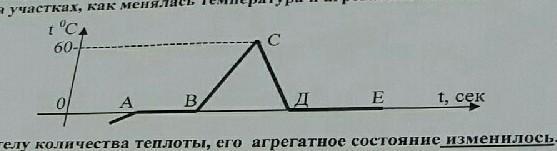 На рисунке представлено графическое изменение температуры воды. Укажите, какие тепловые процессы происходят на участках, как менялась тем-ра и агрегатное состояние воды??