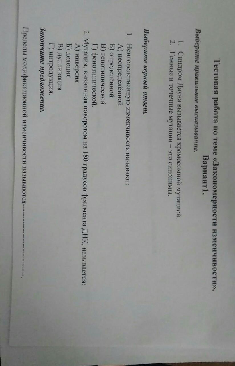 Последнее задание: Предел проявления модификационной изменчивости организма при неизменном генотипе — норма реакции. Норма реакции обусловлена генотипом и различается у разных особей данного вида