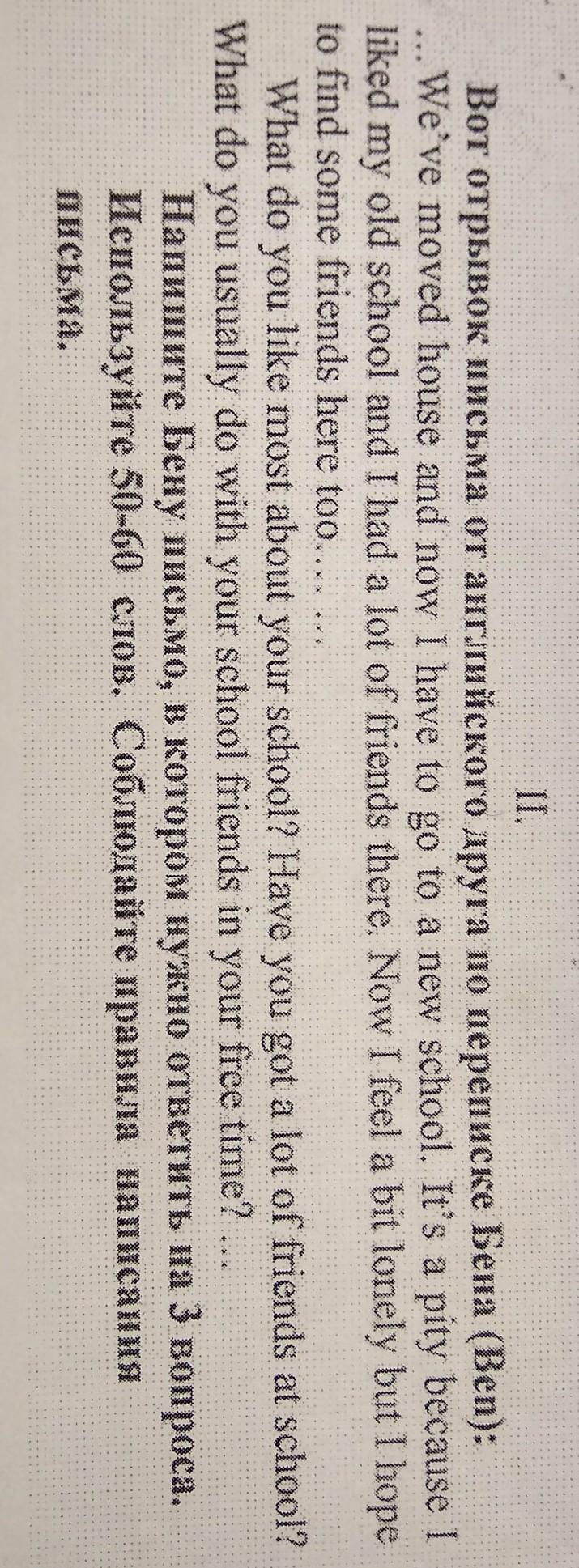Ми переїхали до будинку і я повинен йти до нової школи. Шкода, тому що мені подобалася моя стара школа, і в мене було багато друзів. Тепер я відчуваю себе самотньо, але сподіваюся знайти друзів і тут ... Що тобі найбільше подобається у твоїй школі? У тебе є багато друзів у школі? Що ти зазвичай робиш зі своїми друзями у вільний час?