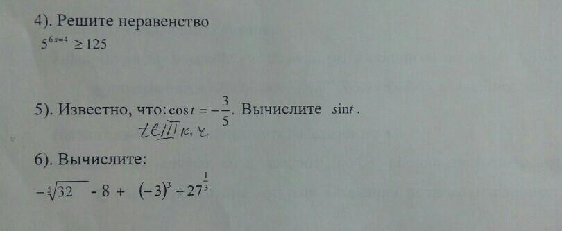 4) не видно знак в степени 5) sint=-4/5 6) -34