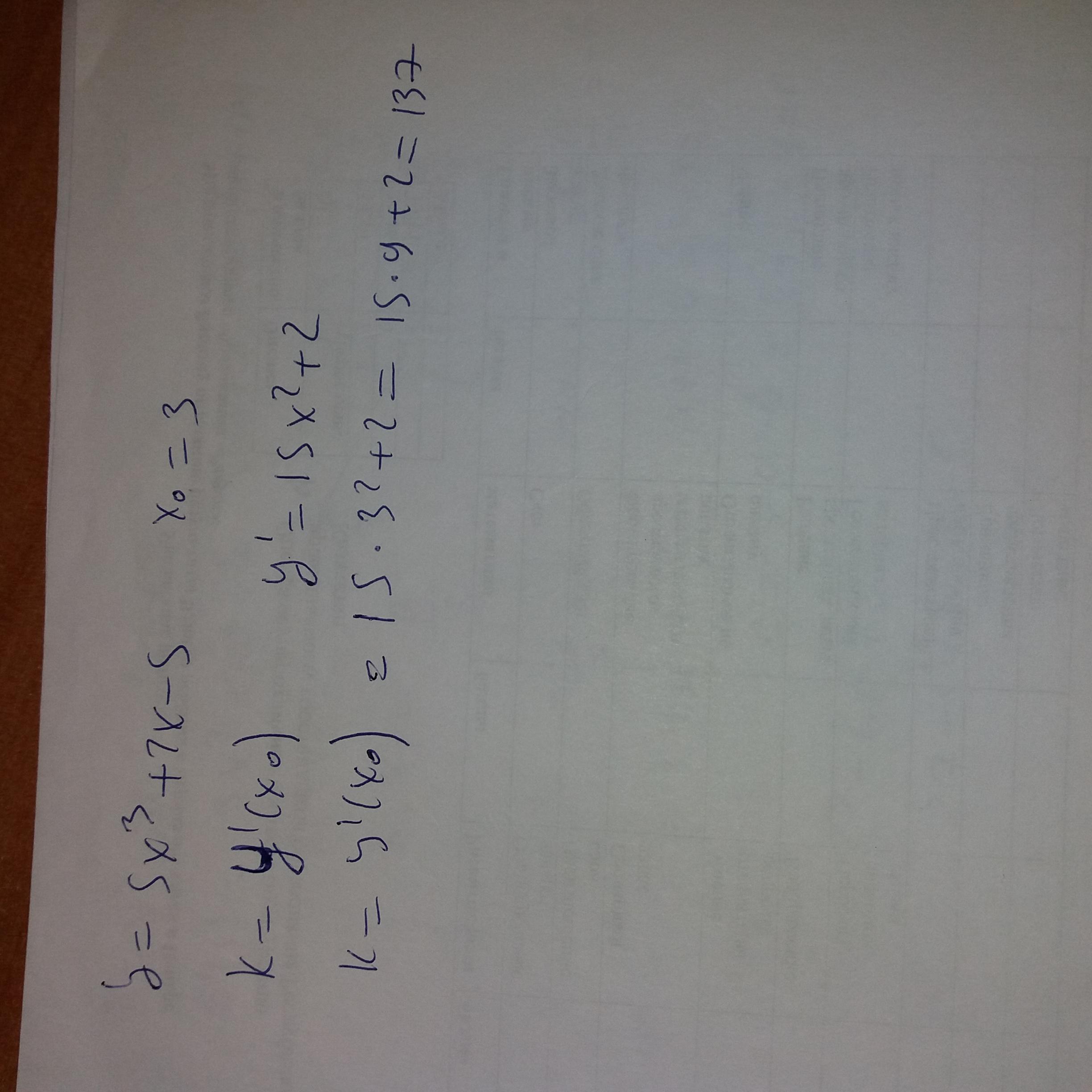 y=5x^3+2x-5 в его точке с абциссой x=3