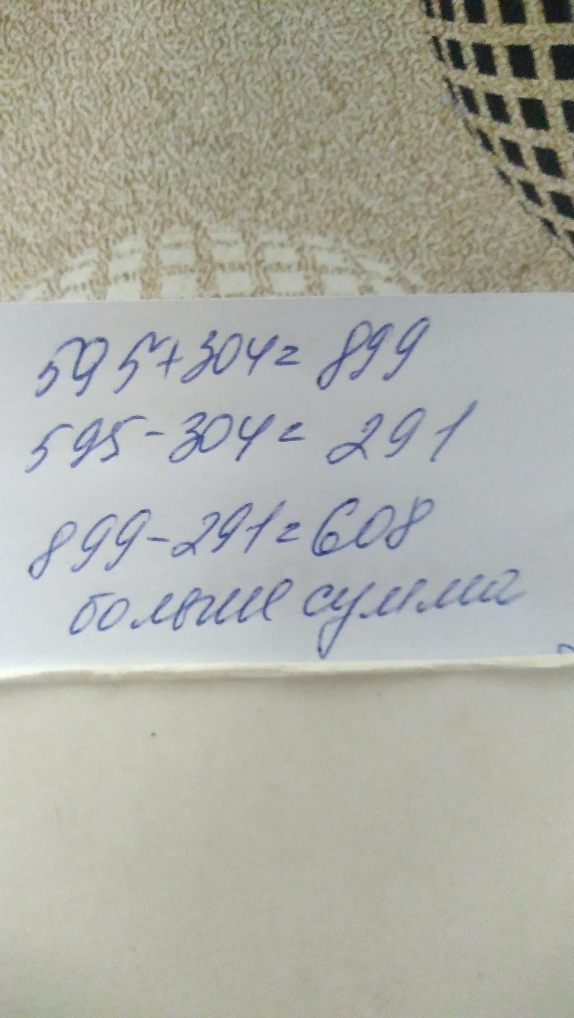 Помогите 3 в классу: Узнай, что больше и на сколько: сумма чисел 595 и 304 или их разность? Помогите ПОЖАЛУЙСТАААААААААААА!
