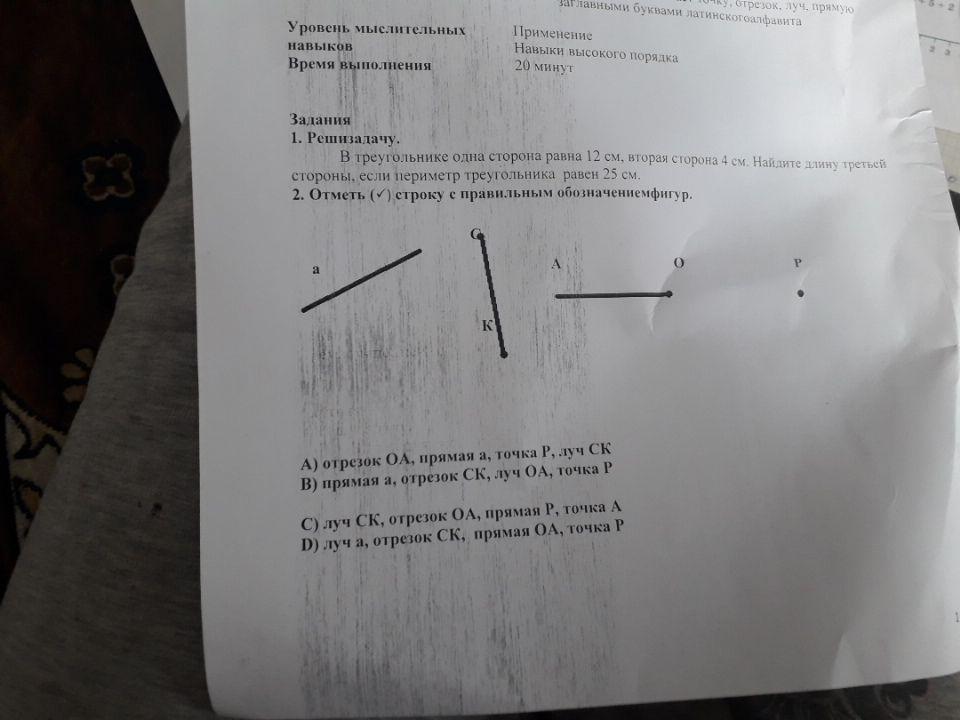 Реши задачу.В треугольника одна сторона равна 12 см,вторая сторона 4 см.Найдите длину третьей стороны,если периметр треугольника равен 26 см.Отметь строку с правильным обозначением фигур.Помогите пожалуйчта