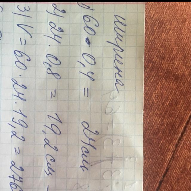 Длина параллелепипеда 60 см . Ширина составляет 40% длины. Высота 80 % ширины. Найти объём параллелепипеда ,и общую площадь поверхности.