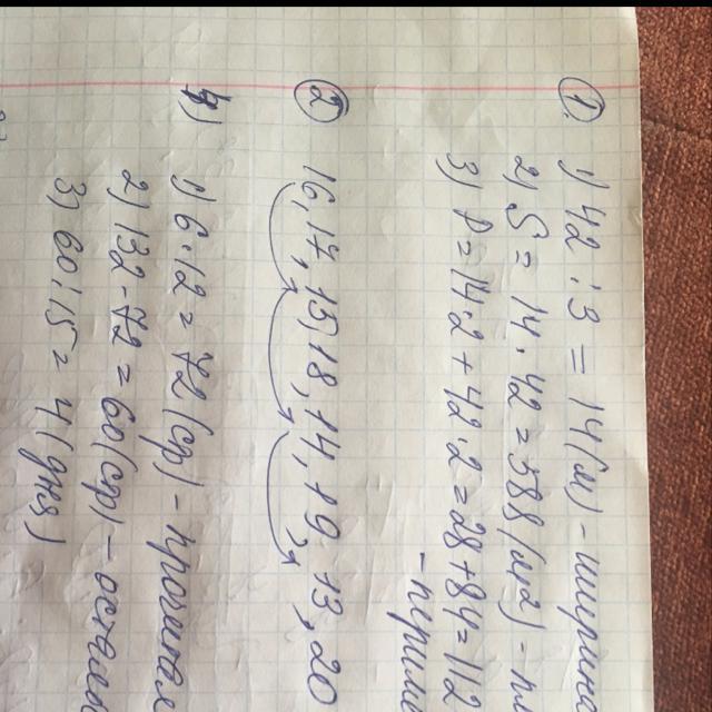 1 ) Длина прямоугольника 42 м, что в 3 раза больше ширины. Найдите периметр и площадь прямоугольника.