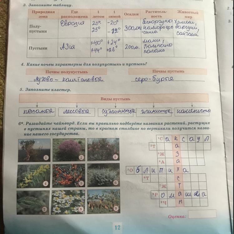 в пустынях нашей страны, то в красном столбике по вертикали получится назва-
