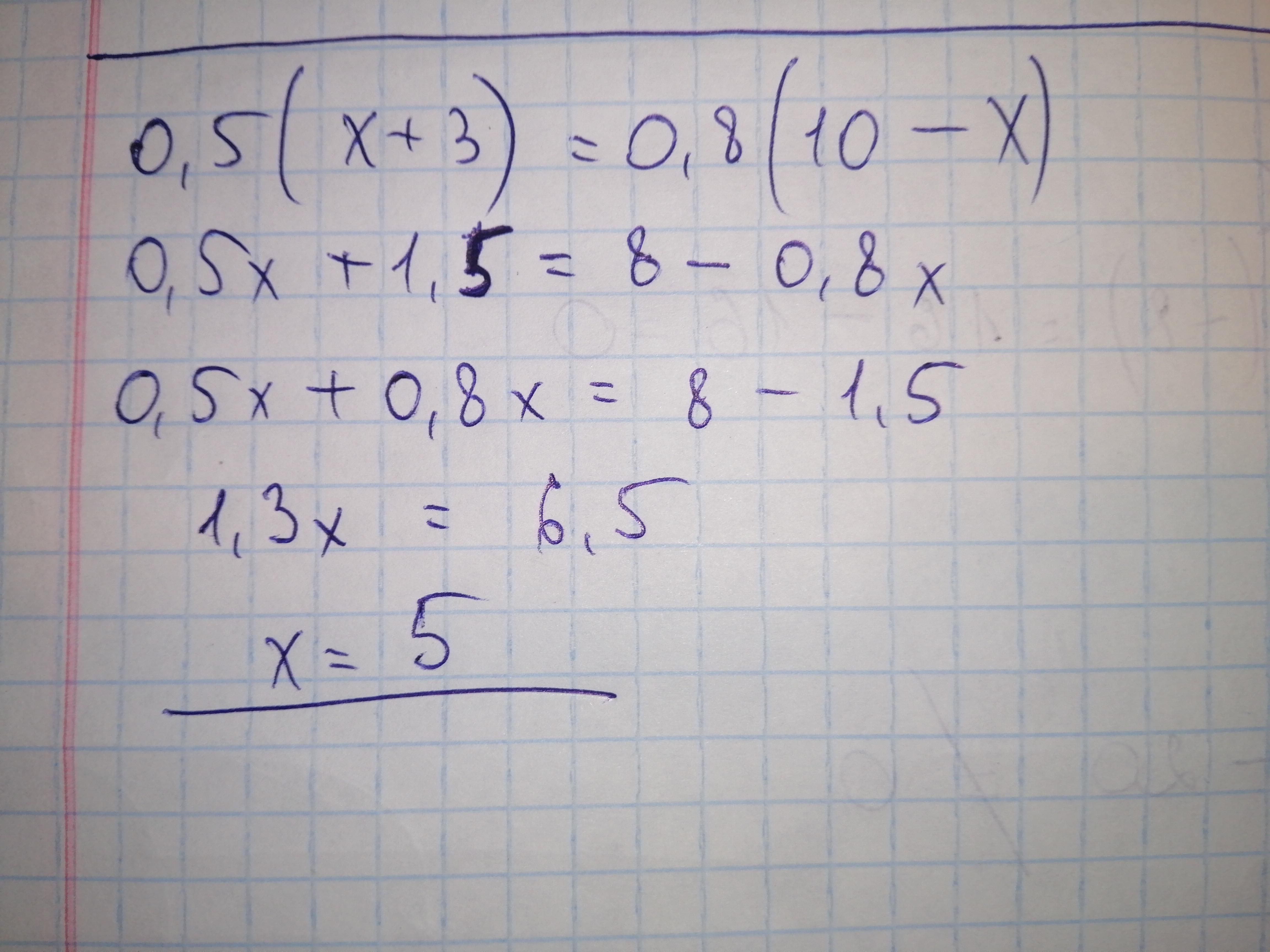 0.5•(х+3)=0.8•(10-х)