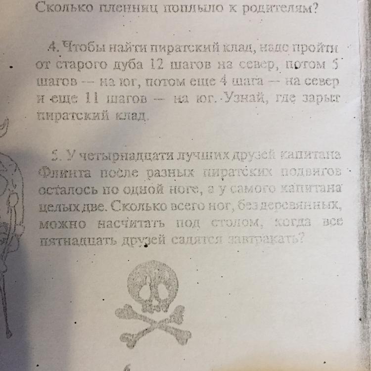 Пошаговое объяснение:у капитана обе ноги есть, а у остольных 14 пиратов по 1 нет