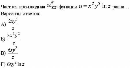 Частная призводная U''xz функции u = x^2*y^2 ln z равна варианты ответов на скриншоте