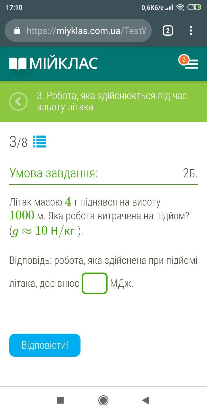 Вiдповiдь: робота, яка здійснена при підйомі літака, дорівнює
