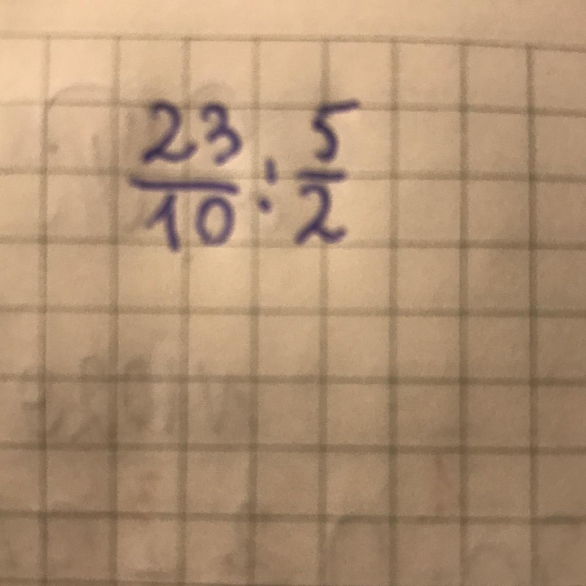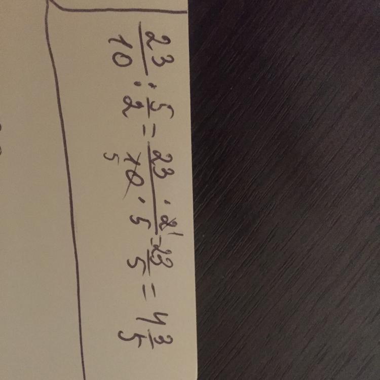 Вот что получается, вообще. При делении дробь на дробь, вторая дробь переворачивается, т.е. 23/10 : 2/5