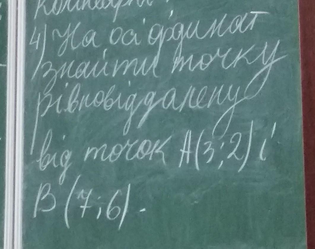 Пусть точка O равно удалена от точек A(3; 2) и B(7; 6)
