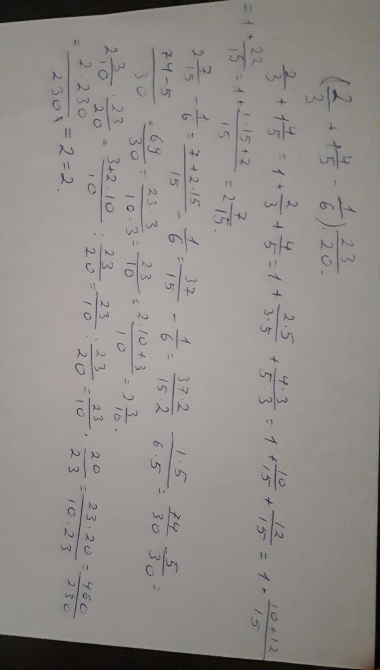 (2/3 + 1 4/5 -1/6) : 23/20=2