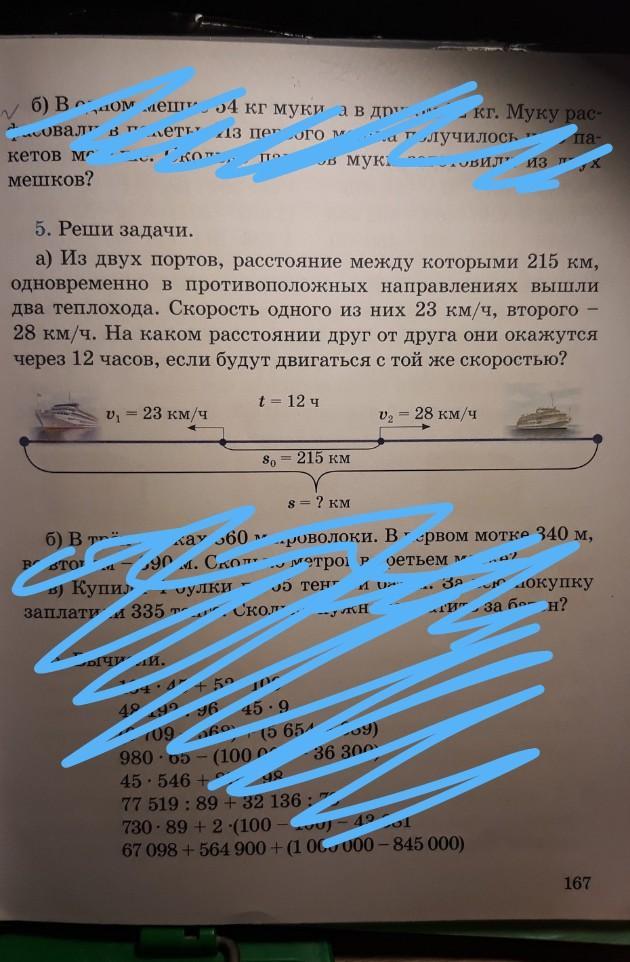 из 2 портов расстояние между которыми 215 км одновременно в противоположных направлениях вышли два теплохода Скорость одного из них 20 км ч второго 28 км ч какое расстояние в друг от друга Они окажутся Через 12 часов Если будут двигаться с той же скоростью