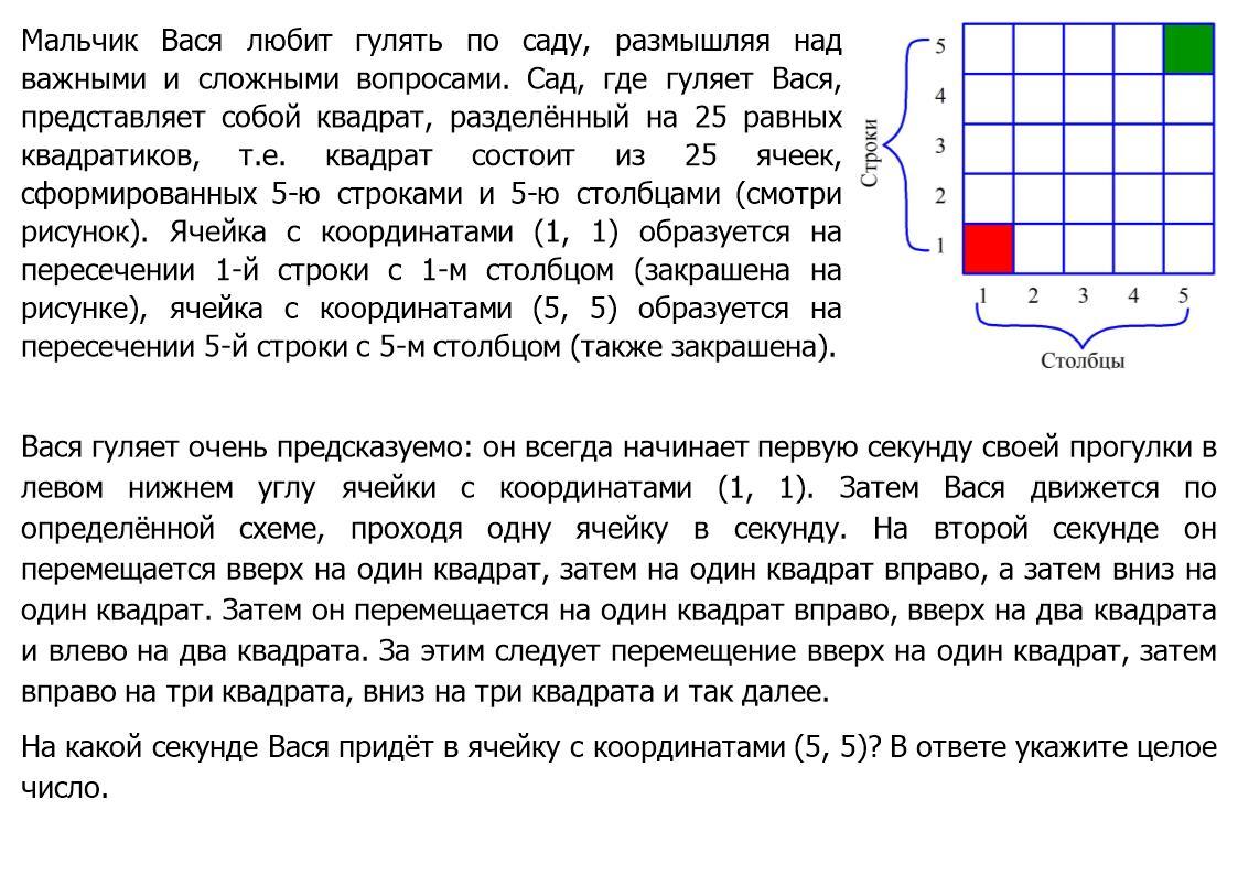 на 15 снкунде он доходит до зеленой ячейки просто нужно подсчитать