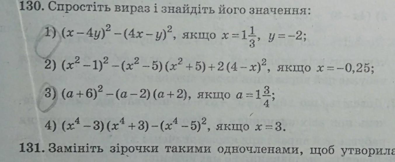 1)(х-4у-4х+у)(х-4у+4х-у)=(-3х-3у)(5х-5у)=