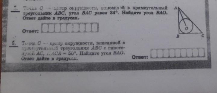 AO - биссектриса угла A. Значит, BAO=BAC/2 = (90-BCA)/2=40/2=20