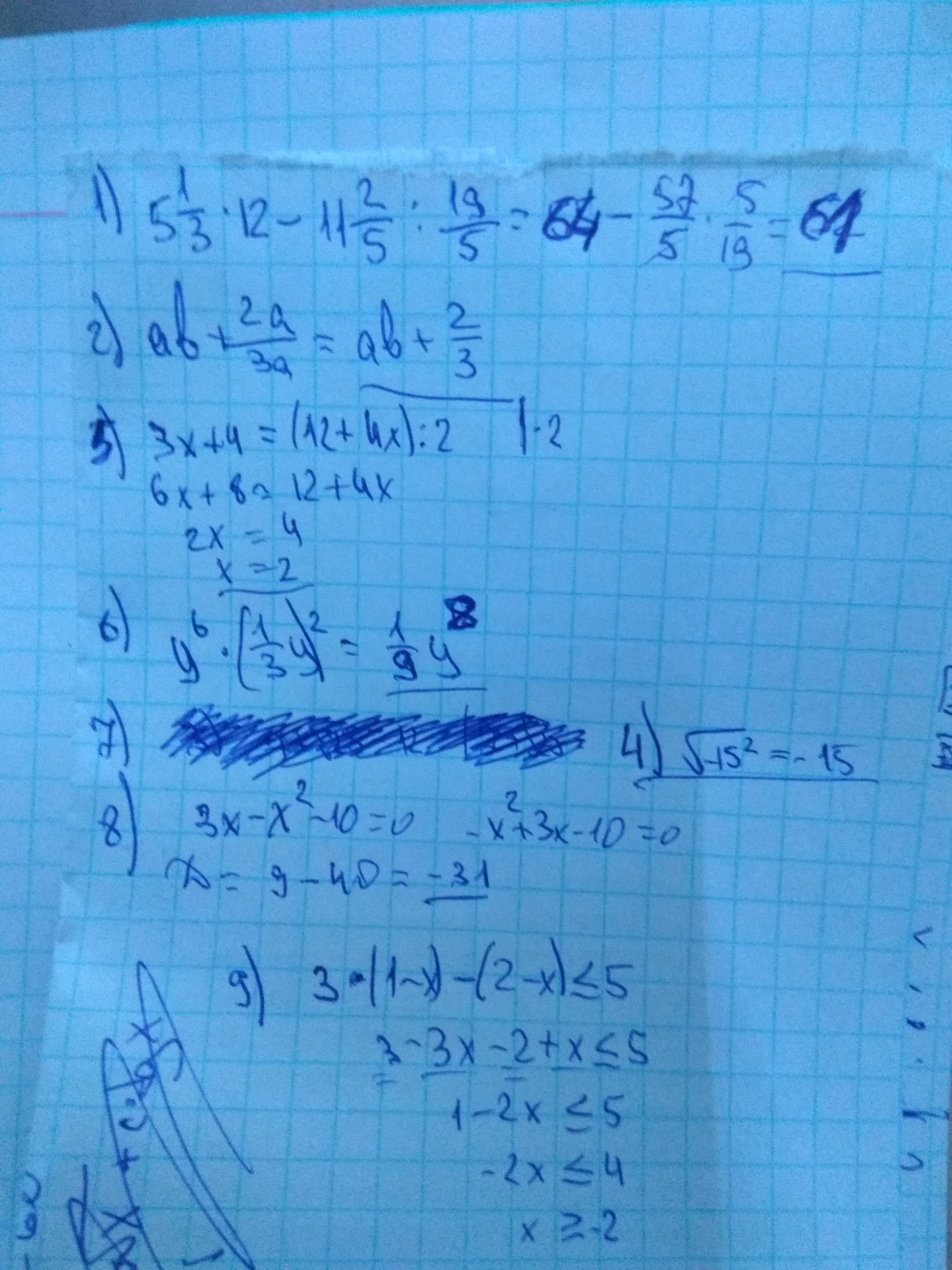 9. Решите неравенство 3(1-х)-(2-х) ≤5