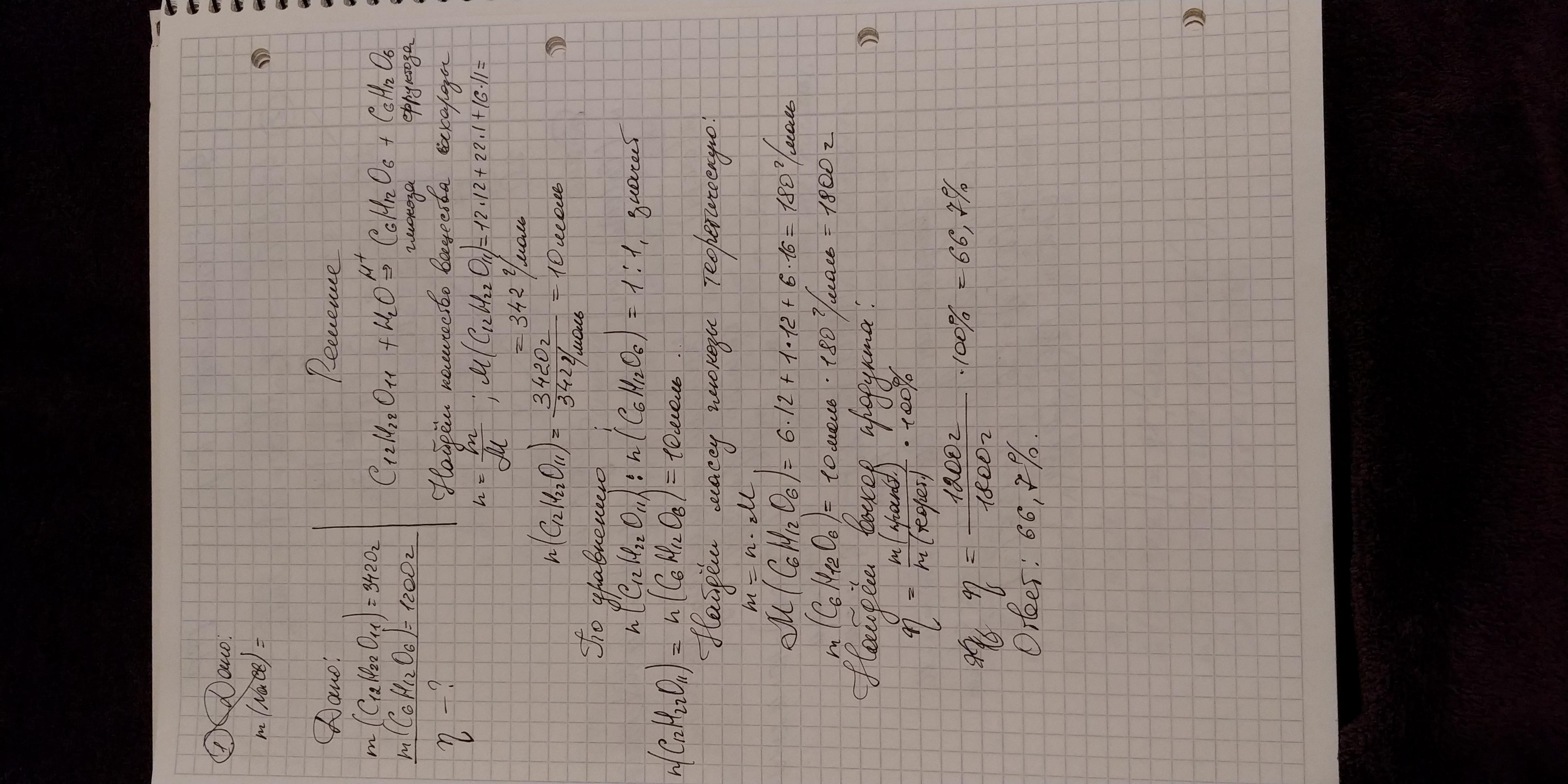 в результаті гідролізу 3420 г сахарози добули 1200 г глюкози. обчислити масову частку виходу глюкози ПОМОЩЬ АААА
