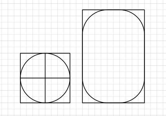 Начертить квадрат со стороной равной двум радиусам секторов,