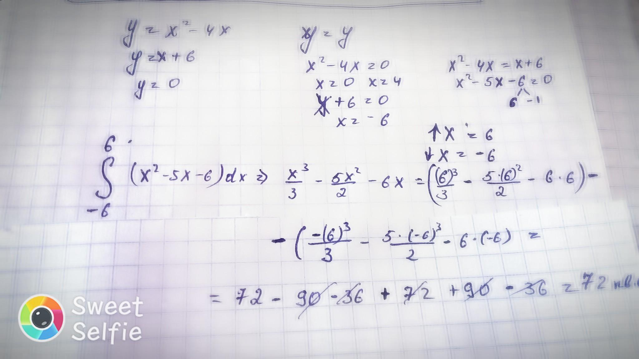 3. Определить прощать фигуры, ограниченной кривой y = x2-4x и прямой y=x+6 и y=0