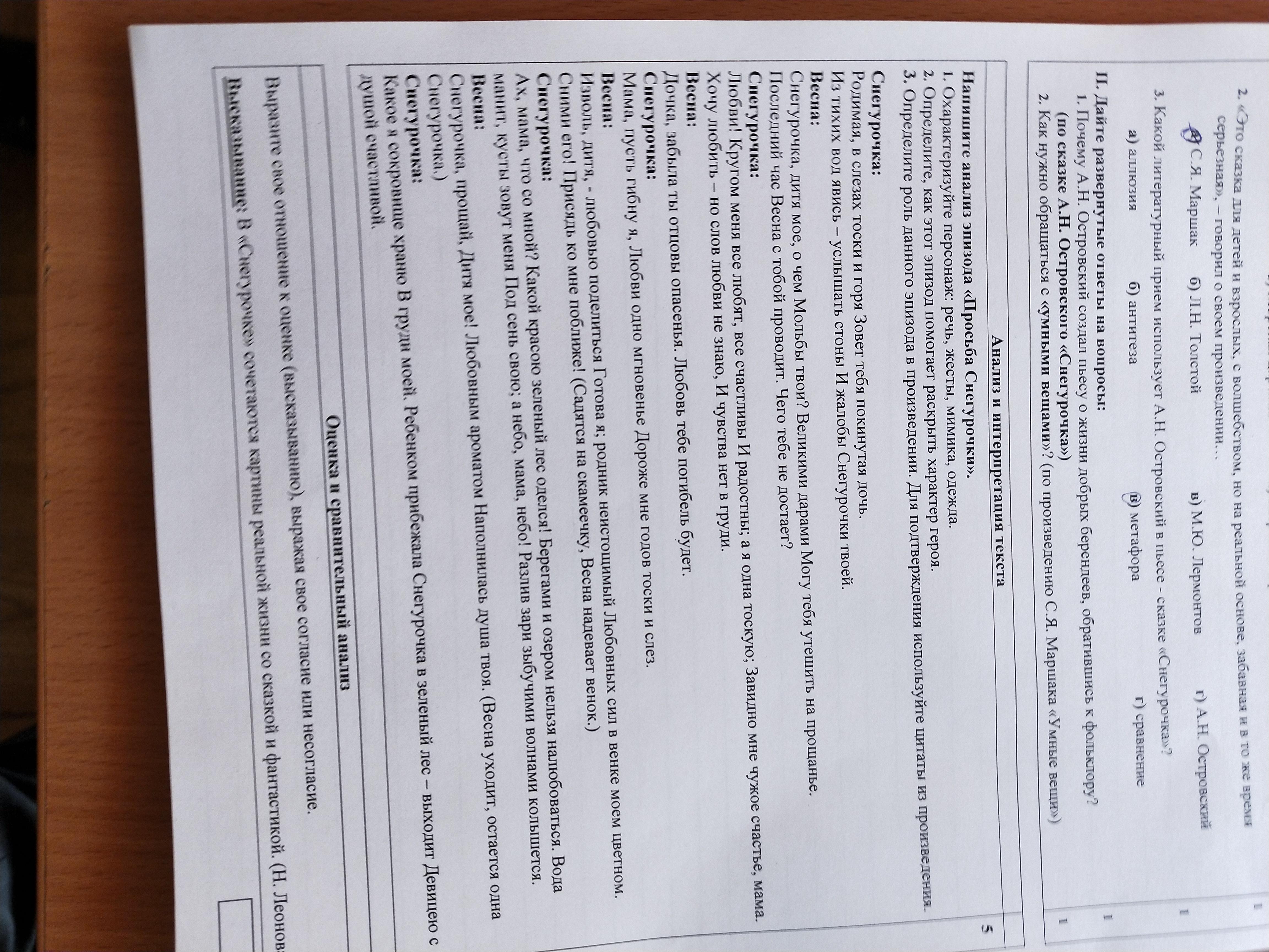 3. Этот эпизод очень важен в произведении, потому что в нем раскрываются настоящие чувства Снегурочки. (А дальше просто спиши из текста про то как Снегурочка рассказывает о любви).