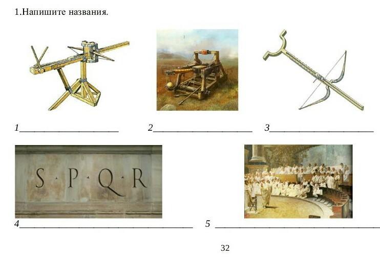 1 . Римский арбалет 2. онагр 3. гастрофет 4.сенат и свободный народ Рима5.сенат