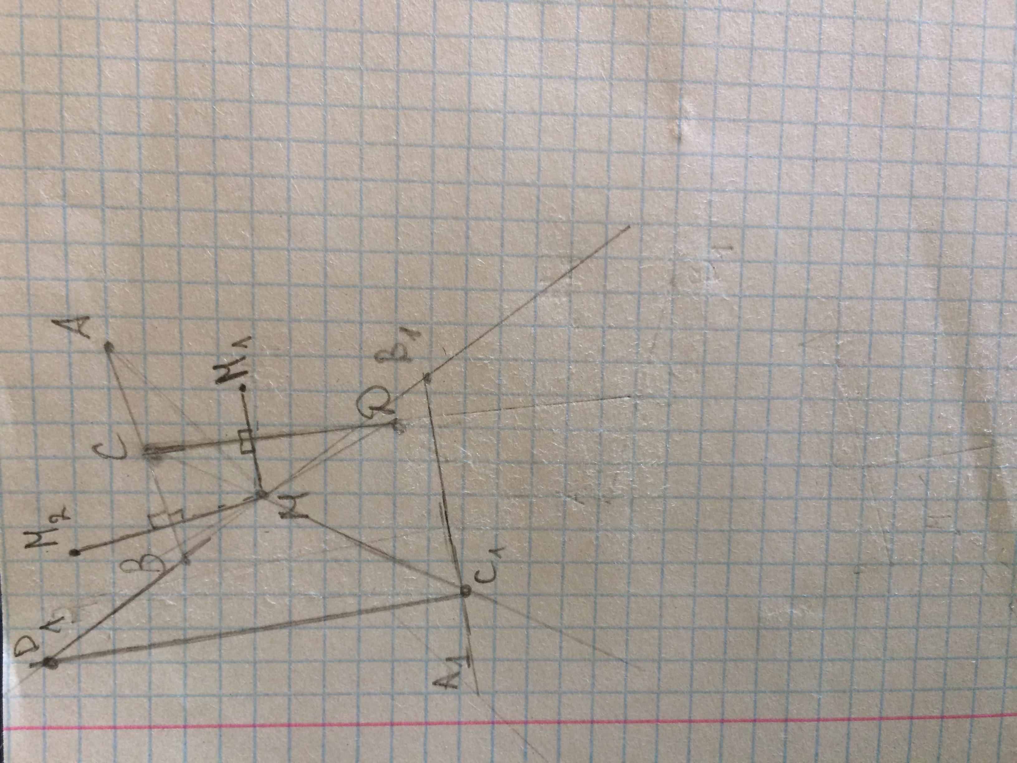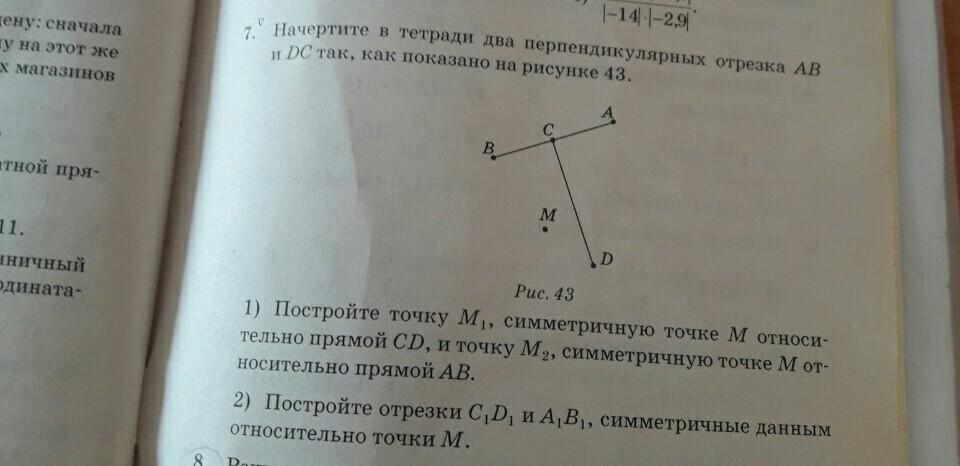 Конечно! Потому-что в задании 2 сказано начертить симметрично точке M, вот я и провёл линии через точку M и начертил.
