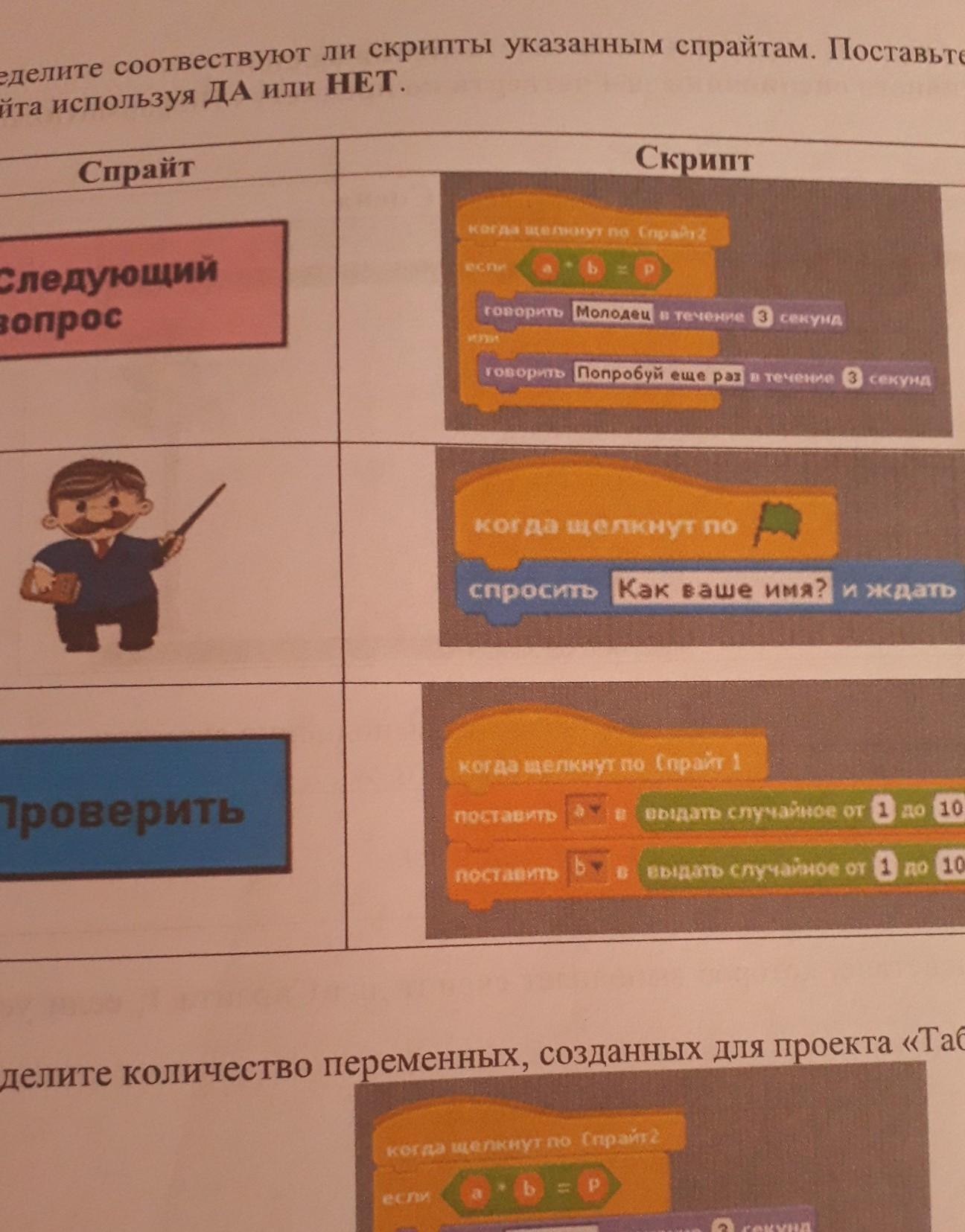 определить соответствует ли скрипты указанным спрайтом поставьте отметки для каждого Спрайта используют да или нет