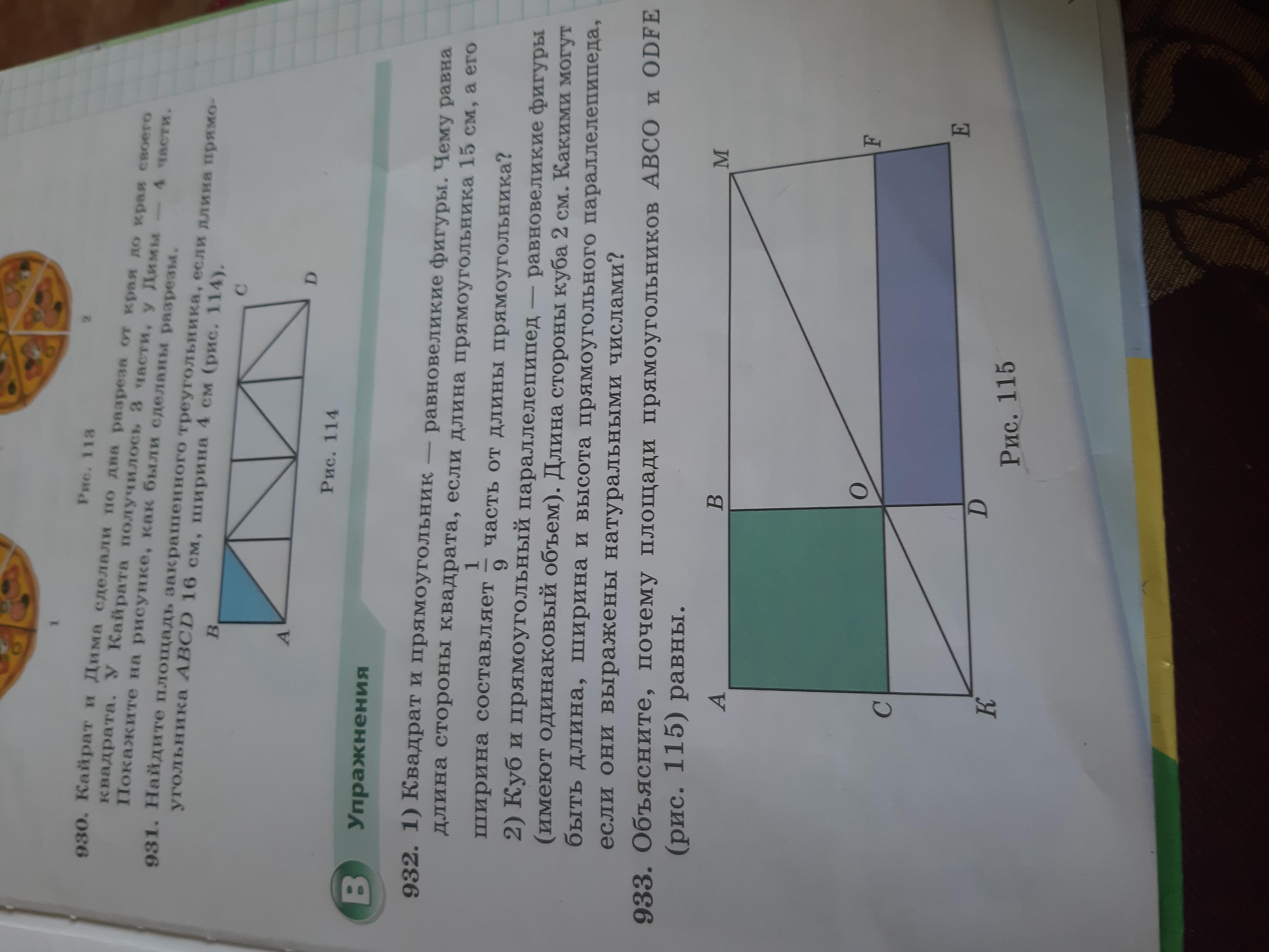 смотри тебе нужно узнать Sпр. потом зелёный квадрат разделить на 2 и потом у тебя должно быть столько же см сколько и у синего прямоугольника.