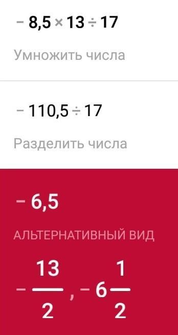 -8.5*1 ³/₁₇ = -8 ⁵/₁₀* ²⁰/₁₇= ⁸⁵/₁₀* ²⁰/₁₇= ⁸⁵*²⁰/¹⁰*¹⁷= ²/₅=⁴/₁₀= 0,4·