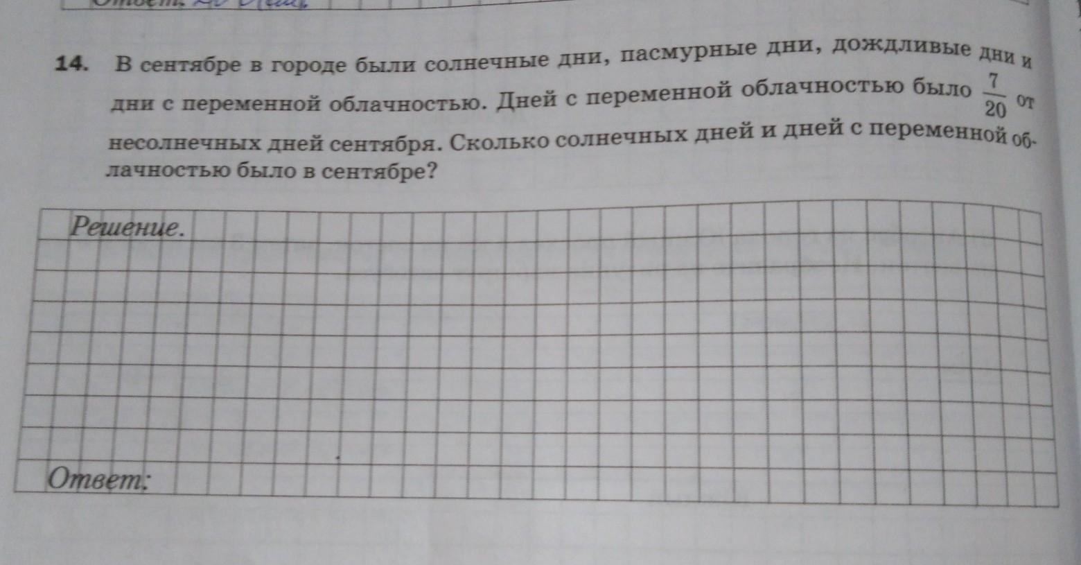 1. Дней с переменной облачностью 7/20 от несолнечных дней , т.е 7 дней из 20