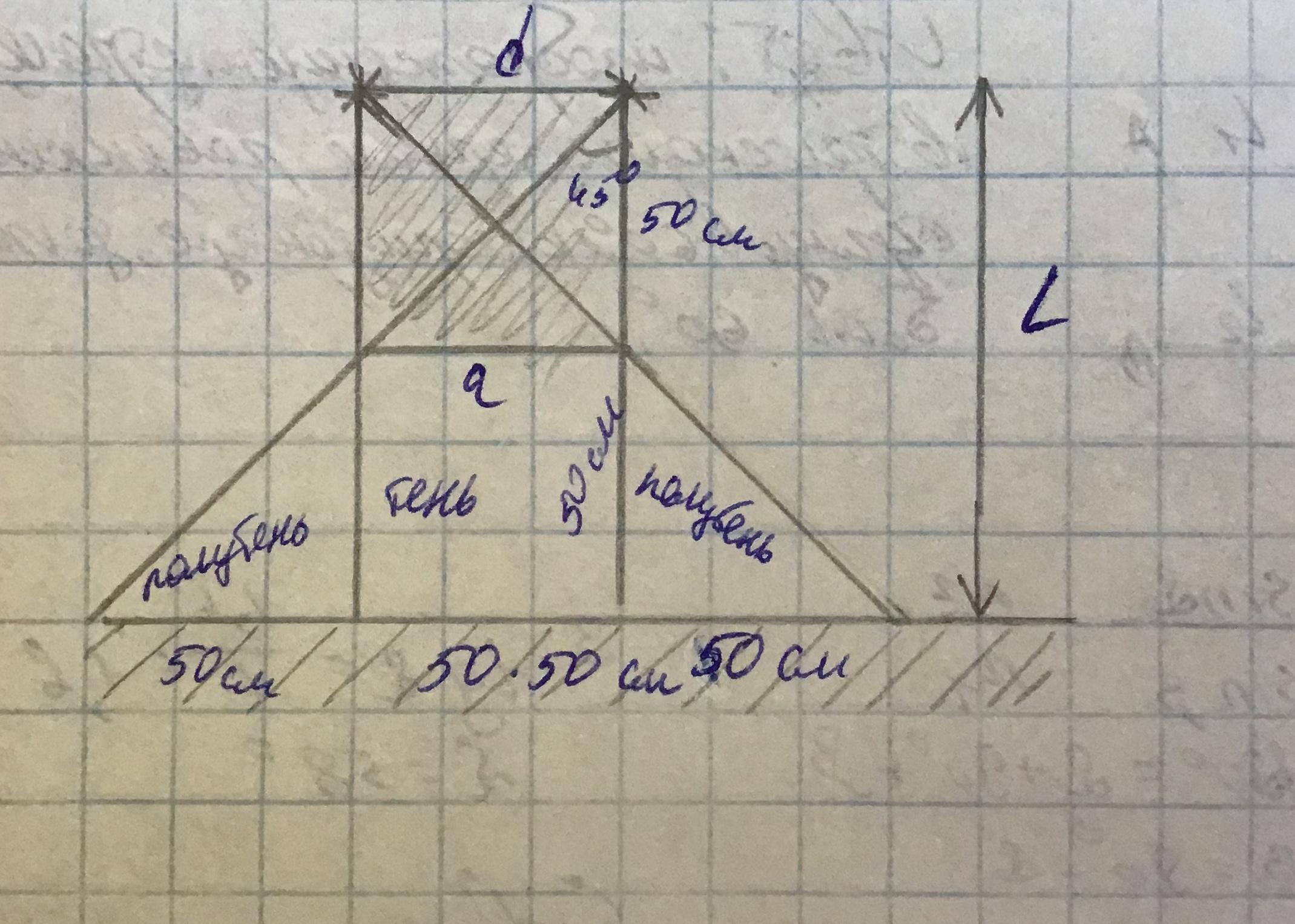 плоскости экрана расположен непрозрачный квадрат со стороной а = 50 см. Найдите площадь
