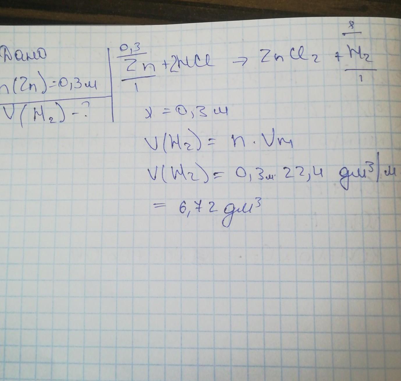 ответ:V(H2) =6,72дм³