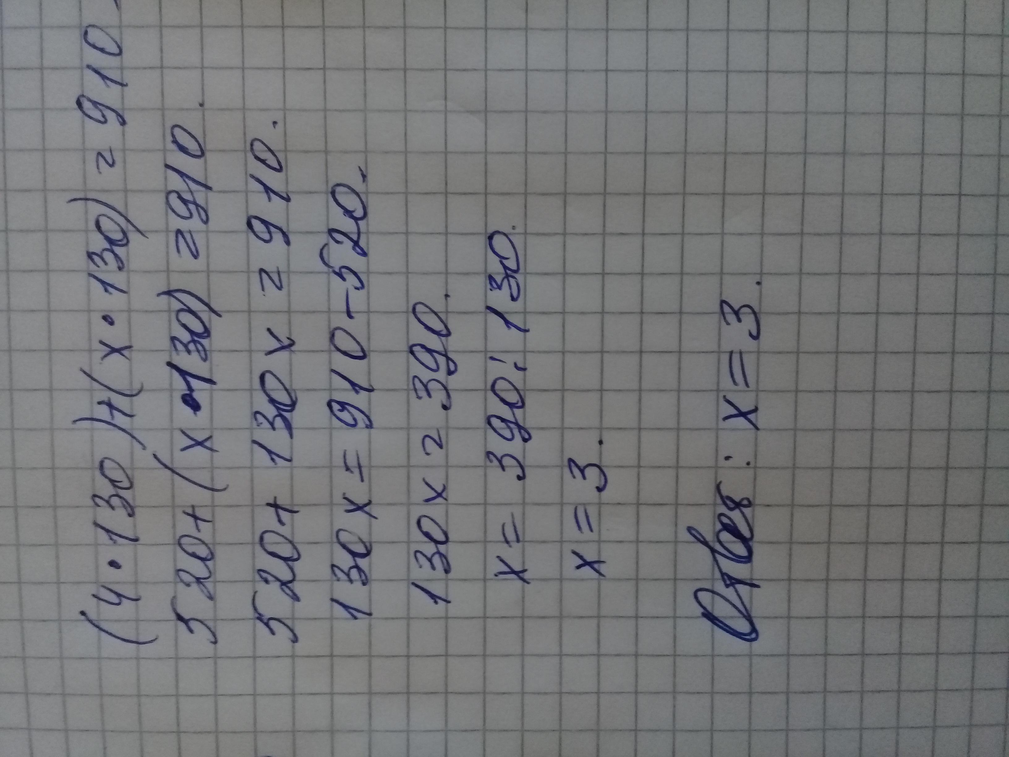 Решить уровнением. Купили 4 пакета вишневого сока по 130 тенге и несколько пакетов абрикосового сока по такой же цене. За всю покупку заплатили 910 тенге. Сколько пакетов абрикосового сока купили?